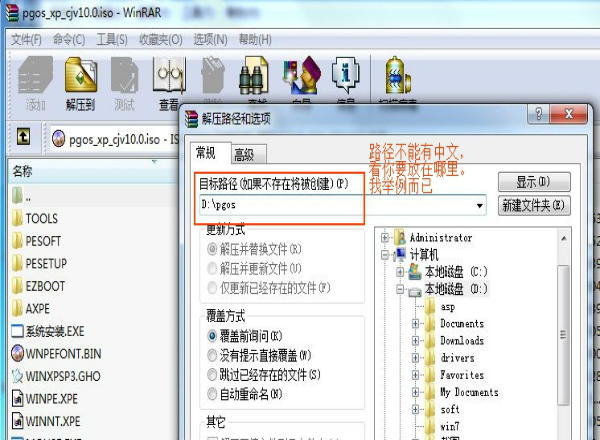 然后打开D:\PGOS (双击系统安装,也有可能是ghost安装器)这个是我举例的目录,当然你可以自己选择喜欢的。就是不能有中文,也不能是C盘或者是即将要安装的分区。